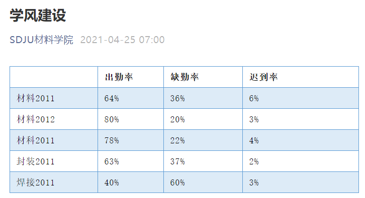材料学院根据学生的健康和学习情况安排了早操晨读和晚自习,以保证同学们拥有足够的学习时间,会在每周结束时进行统计和评比。