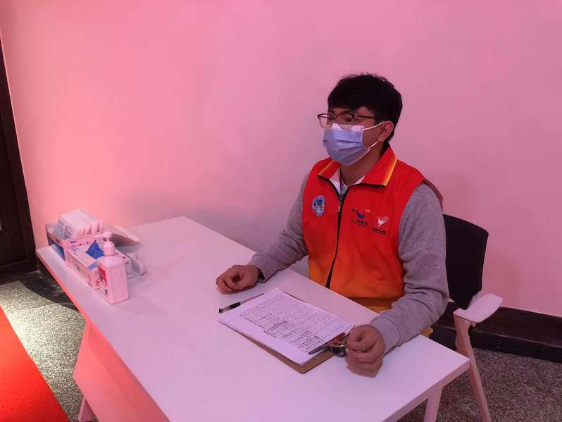 吴明锦同学报名参与实习单位的先锋志愿岗。在下班后,放弃休息时间,负责对外来人员进行登记测温,负责观看监控录像,确保采集核酸规范,并协助防疫人员对核酸异常人员进行流调。