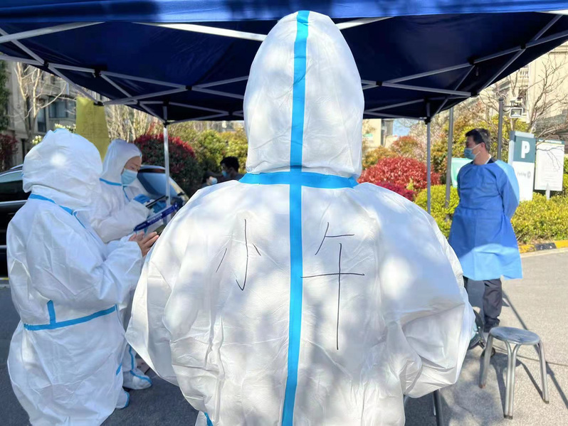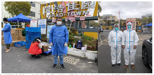 张志玺老师加入宜浩佳园一居委志愿者服务队,帮助小区居民配送快递和生鲜,解决生活必需问题。同时,变身为社区防疫“大白”,配合医疗队完成社区的核酸检测工作。