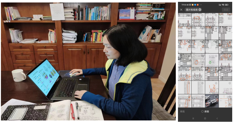 3月13日,学校进入封闭管理,教学工作全面转为线上,作为专职教师,承担两门专业课的教学和毕业设计指导工作,深知线上工作的担子不轻,但毅然对标线下教学标准,以学生按时学、学得懂、做的出为目标,精心组织和准备。在优化两门自建课程的基础上,将更多精力放在开展课后讨论和作业、在线答疑、组织同学互助学方面,缩短线上教学距离,全面掌握学习情况,通过个性化指导与共性问题集中指导相结合的方法,及时解决学习中的各类问题。同时增加项目式教学,逐张批阅近300张图纸,从一张张青涩的图纸到比较专业的装配图,问题被一个个解决,知识被一点点理解,能力被一步步提高。两个月的线上教学,师生携手,确保教学质量。