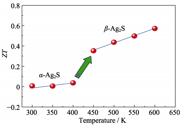材料学院金敏教授长期致力于各种新型半导体热电材料的研发,近期该团队利用垂直区熔技术生长了一种新型柔性Ag2S半导体材料。研究表明,Ag2S在450K温度附近存在从ɑ-Ag2S单斜结构到β-Ag2S体心立方结构的相变。相变之前,Ag2S的热电性能非常微弱,发生结构转变之后热电性能却得到了急剧提升,这主要得益于材料的载流子浓度从价带到导带发生了极大跃迁。Ag2S的热电优值在600K附近达到最大值0.57,说明它是一种很有潜力的中低温热电材料。
