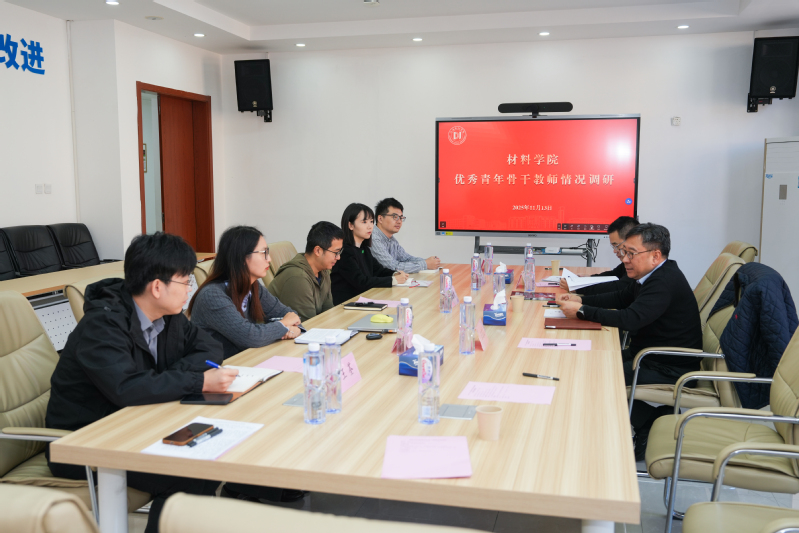 调研会后,鲁雄刚一行同材料学院青年骨干教师进行了座谈, 对青年教师的成长平台和发展空间提出建议和要求。