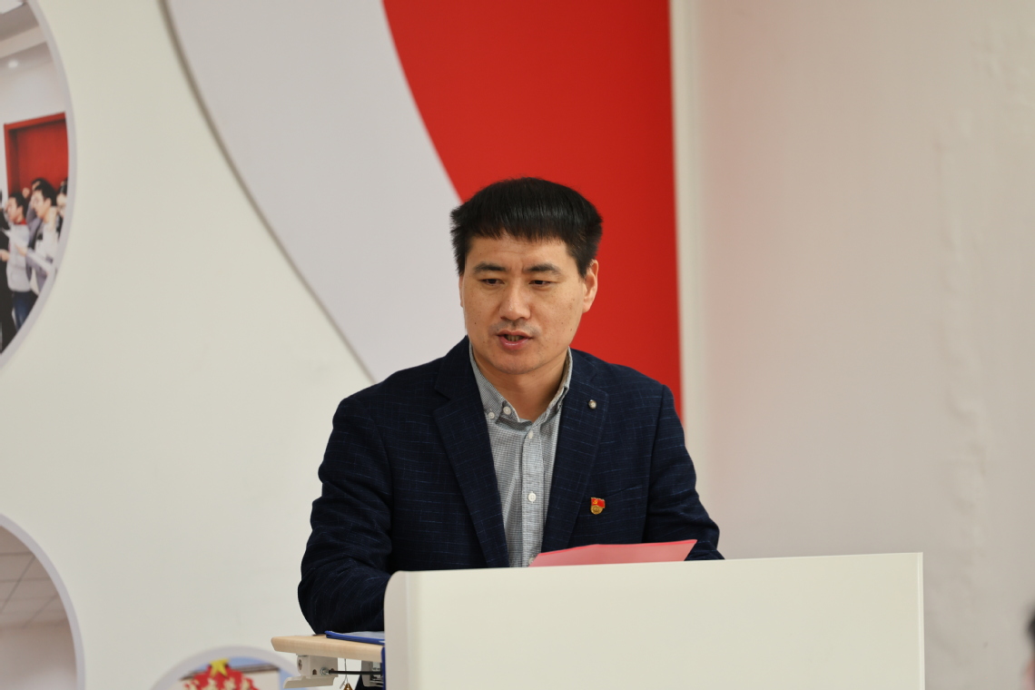 孔祥昆代表学院致欢迎词,他介绍了材料学院坚持走产教融合的特色发展道路,以高质量党建引领各项事业高质量发展所取得的成效,并向胧爱集团对学院发展的支持表示感谢。他鼓励校企协同以党建共建为抓手,促进学生科创事业实现新发展、新突破。